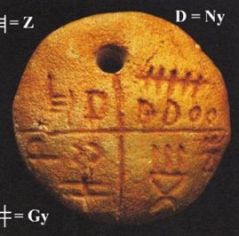 A kb. 7300 éves Tatárlakaikorongon például Boldogasszony BABBA ima olvasható. Olvasata Badiny Jós Ferenc szerint: